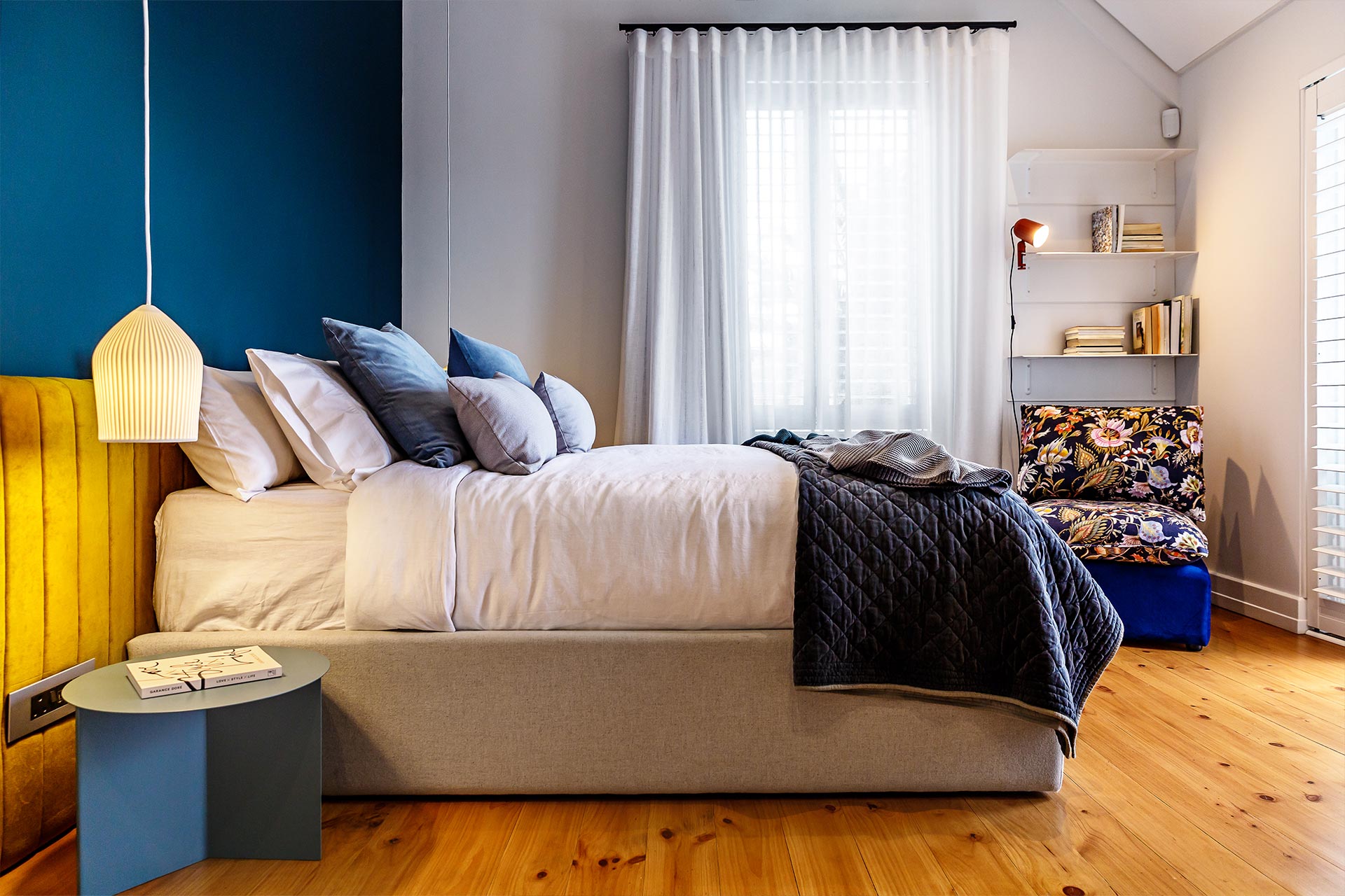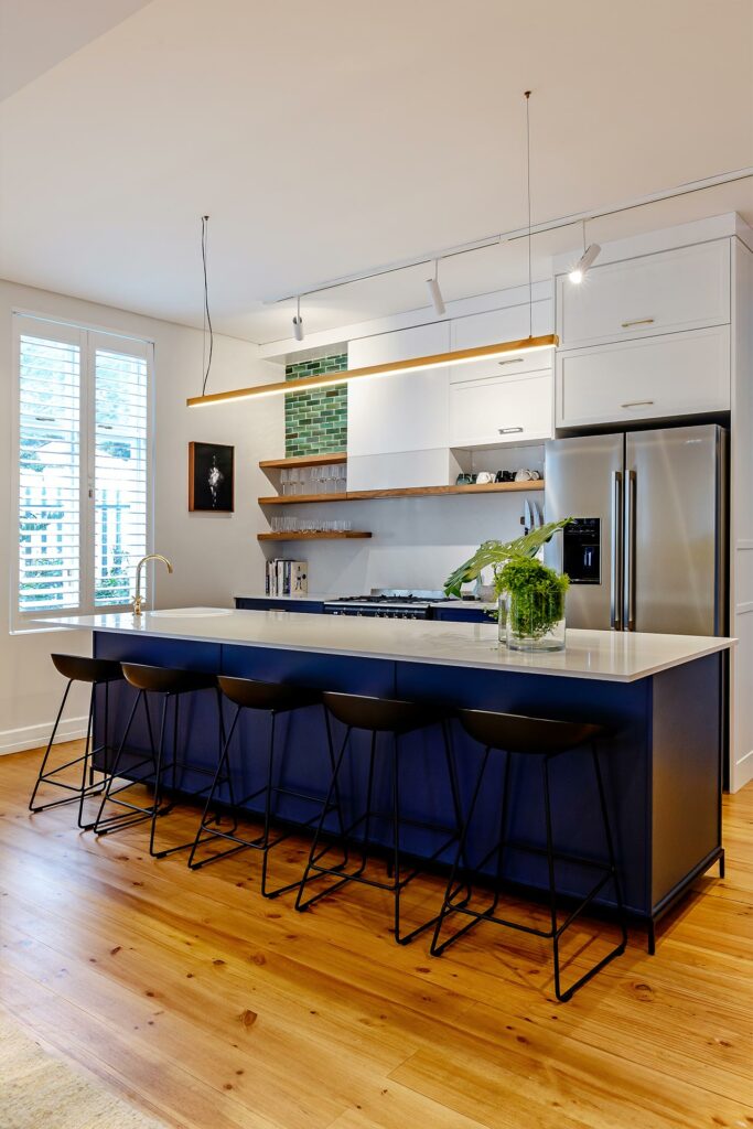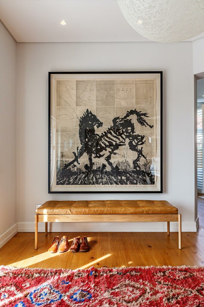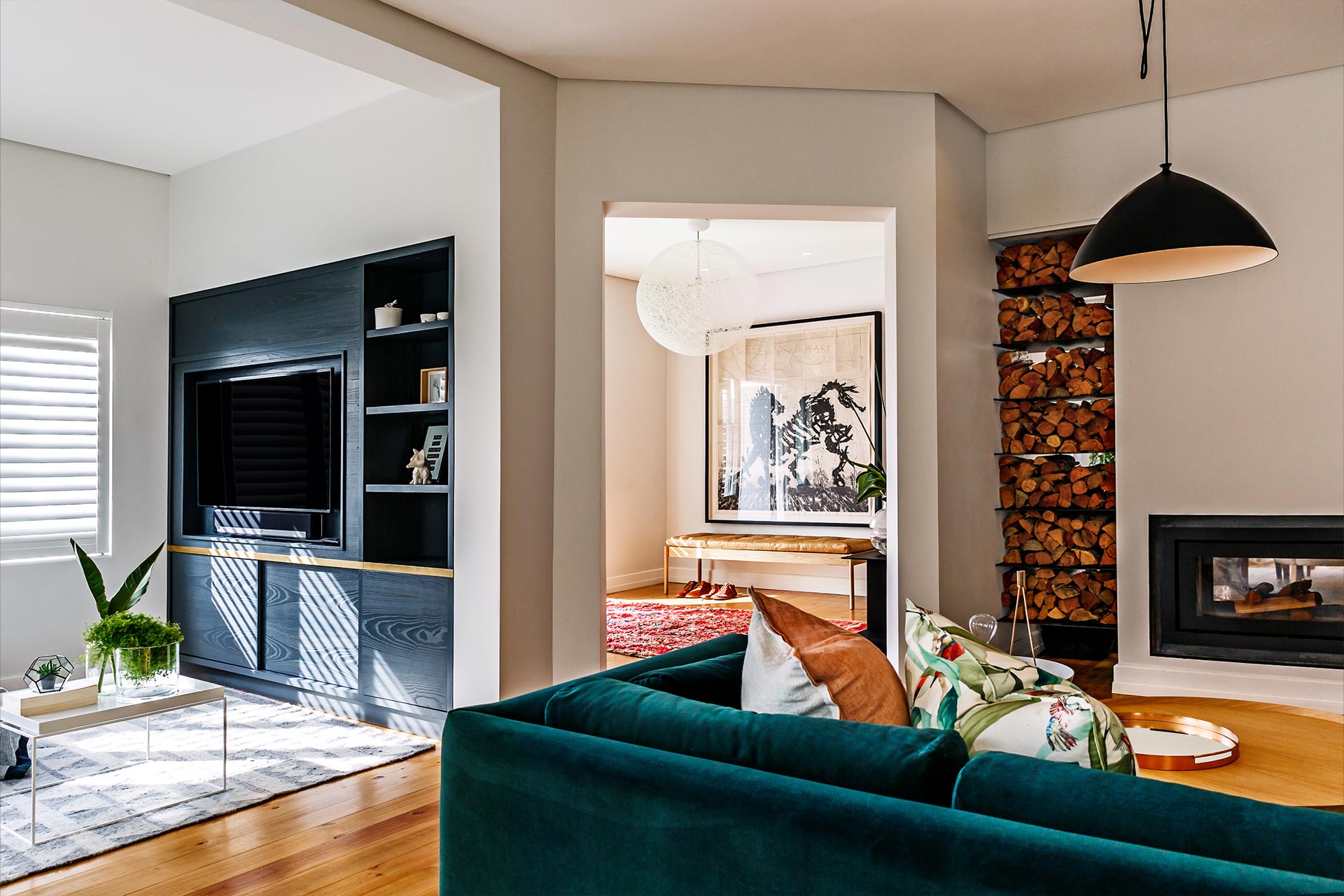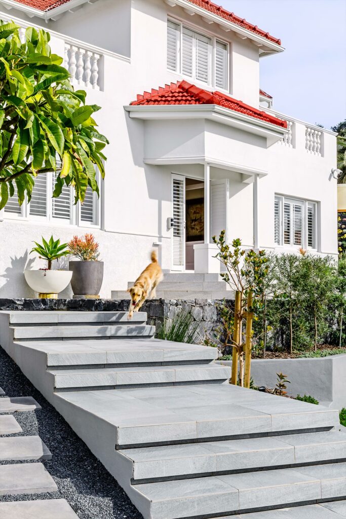 We revitalised this storied heritage home with an eclectic mix of bold patterns, bright colours, and eye-catching light fixtures, anchored by neutral backgrounds for harmony. The design extends outdoors, integrating the home with its garden through terraced lawns and seating areas, enhancing the family’s connection to nature.