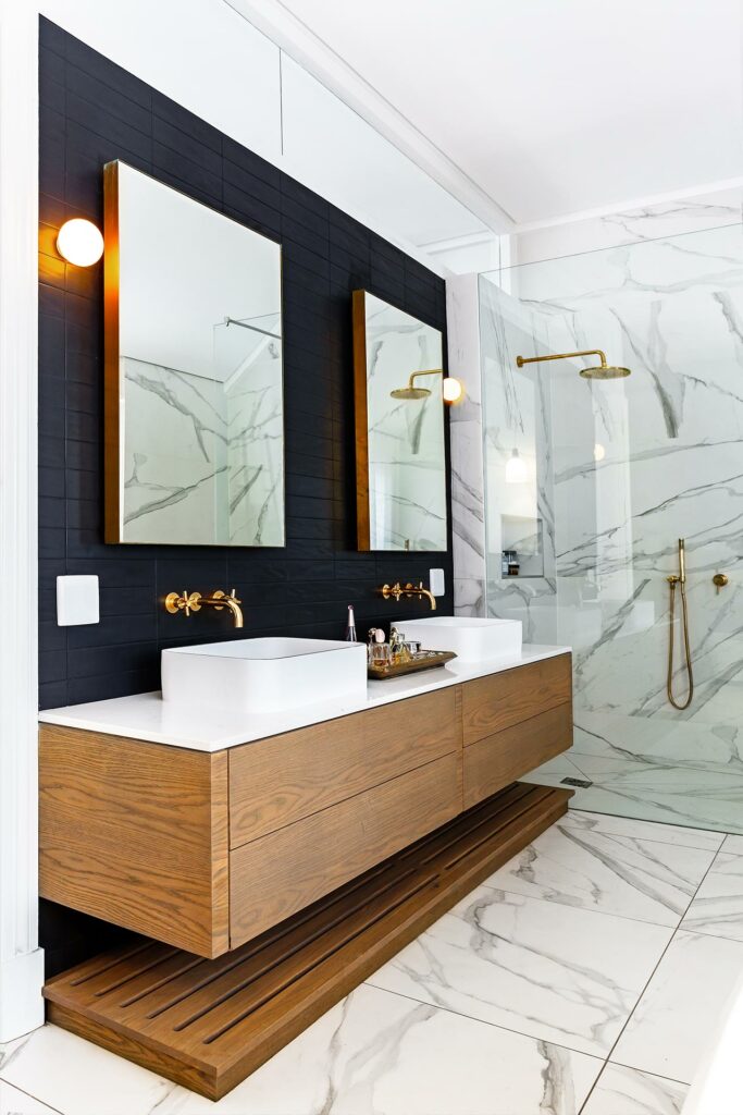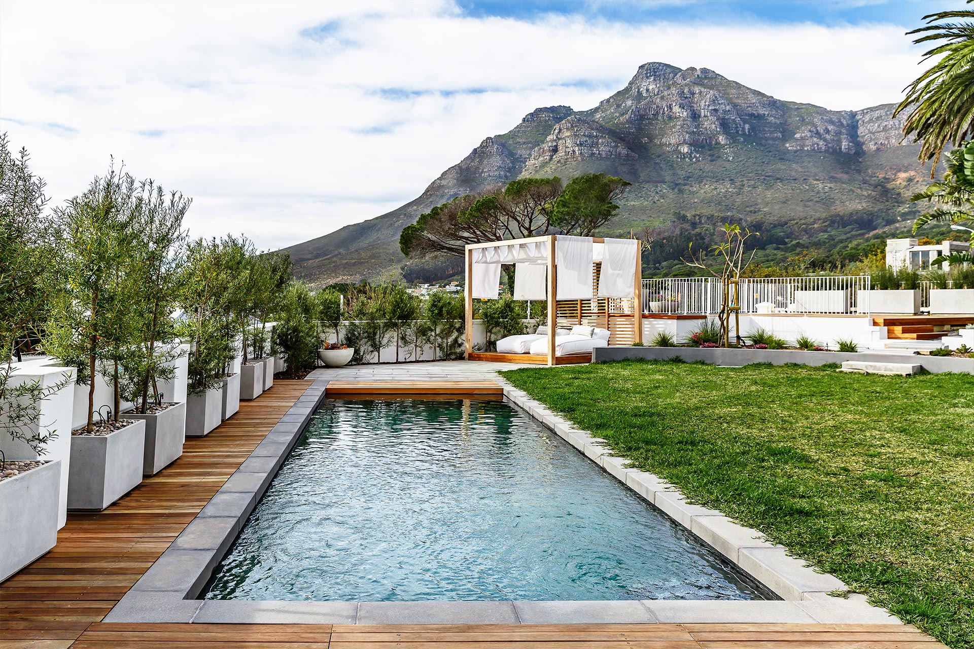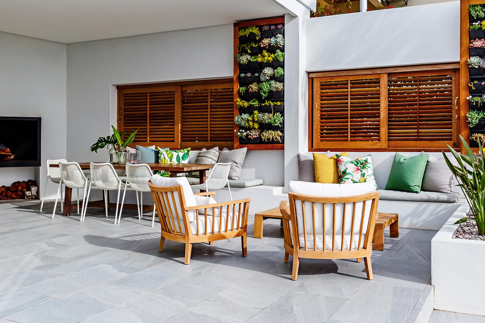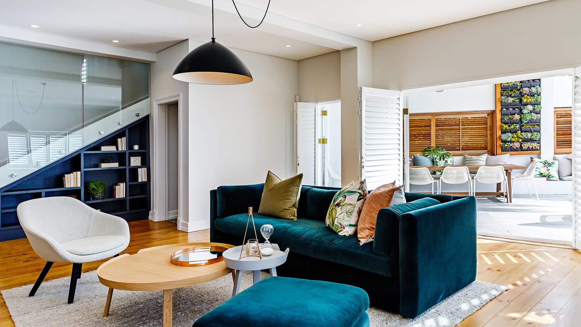 We revitalised this storied heritage home with an eclectic mix of bold patterns, bright colours, and eye-catching light fixtures, anchored by neutral backgrounds for harmony. The design extends outdoors, integrating the home with its garden through terraced lawns and seating areas, enhancing the family’s connection to nature.