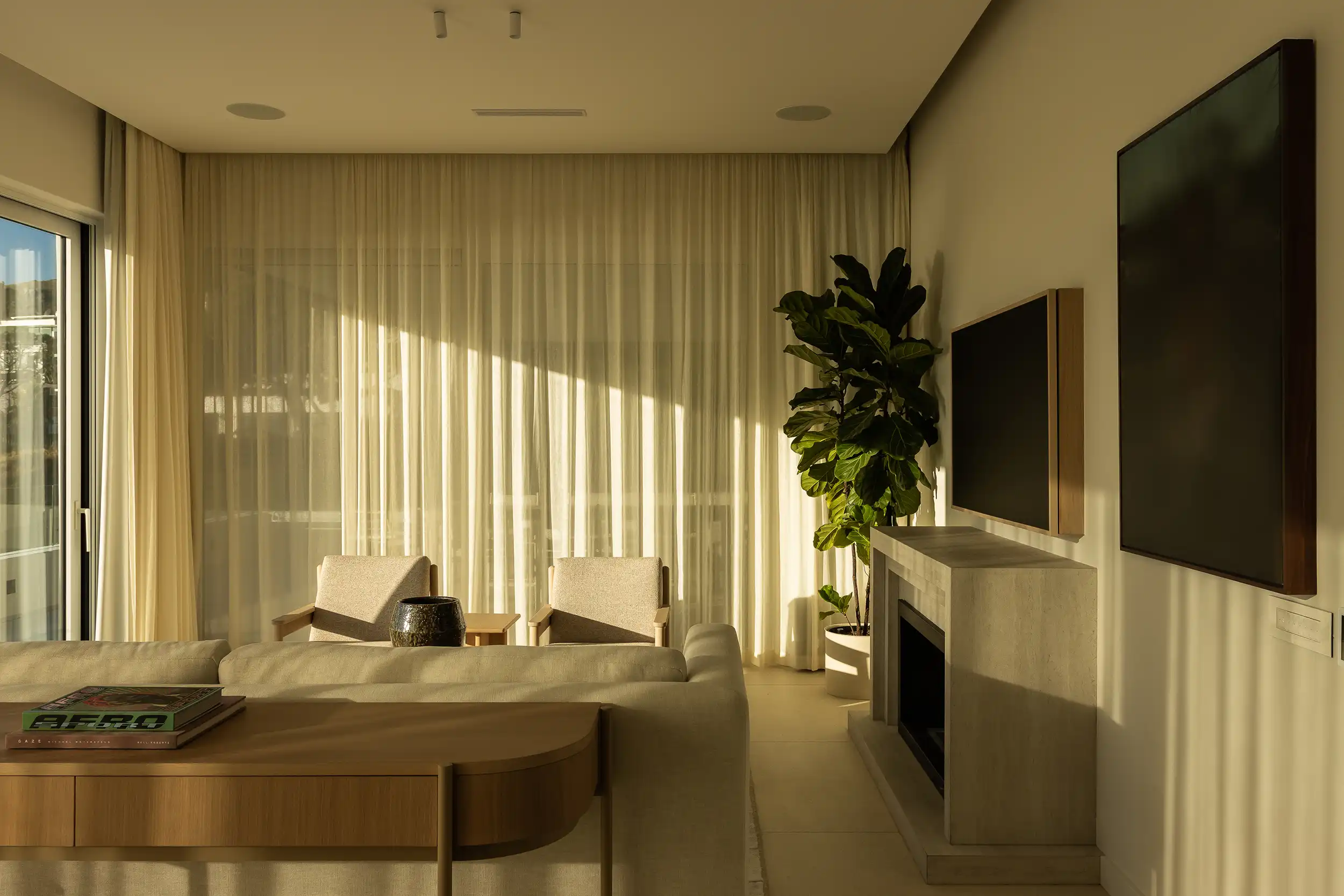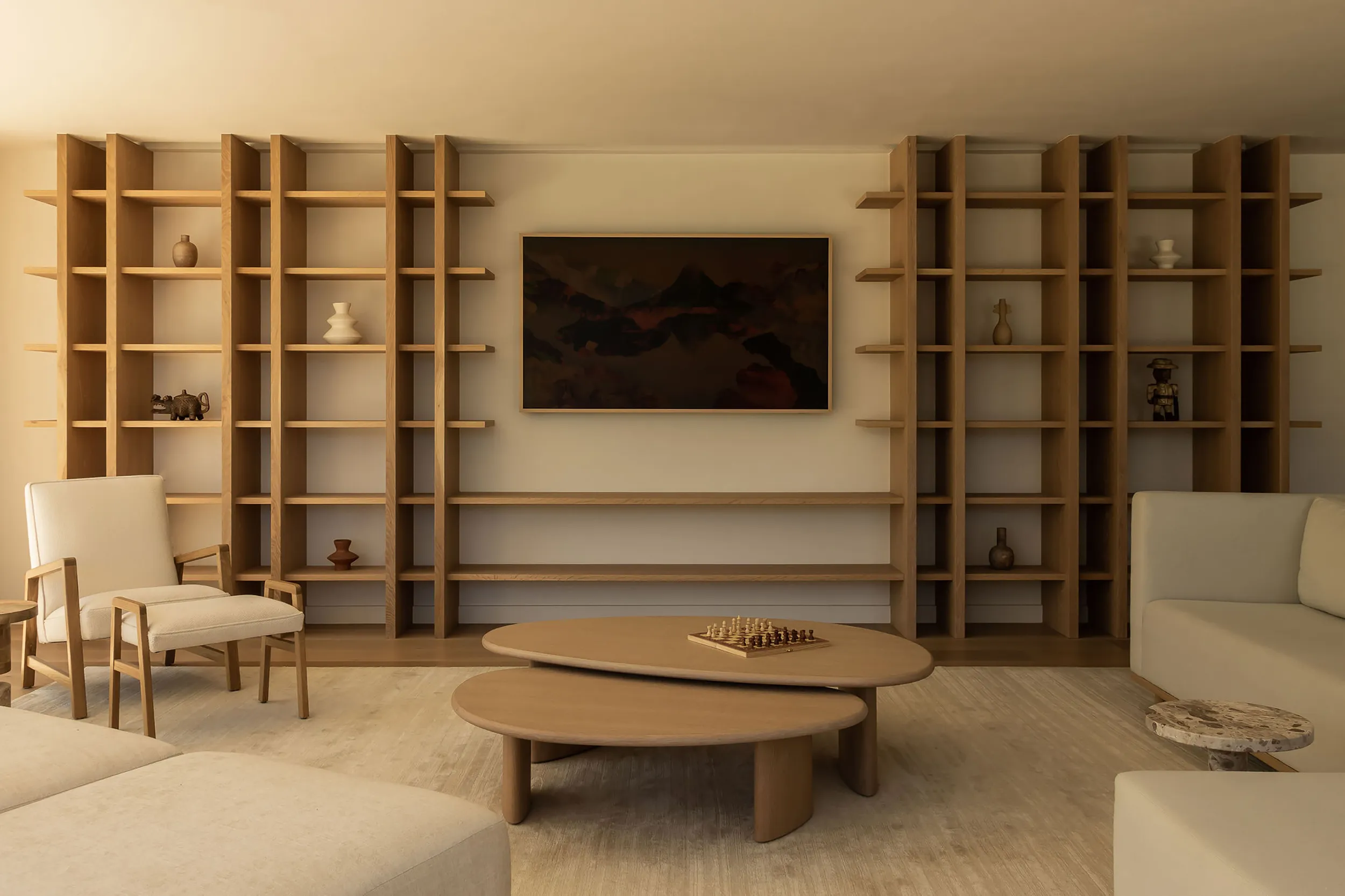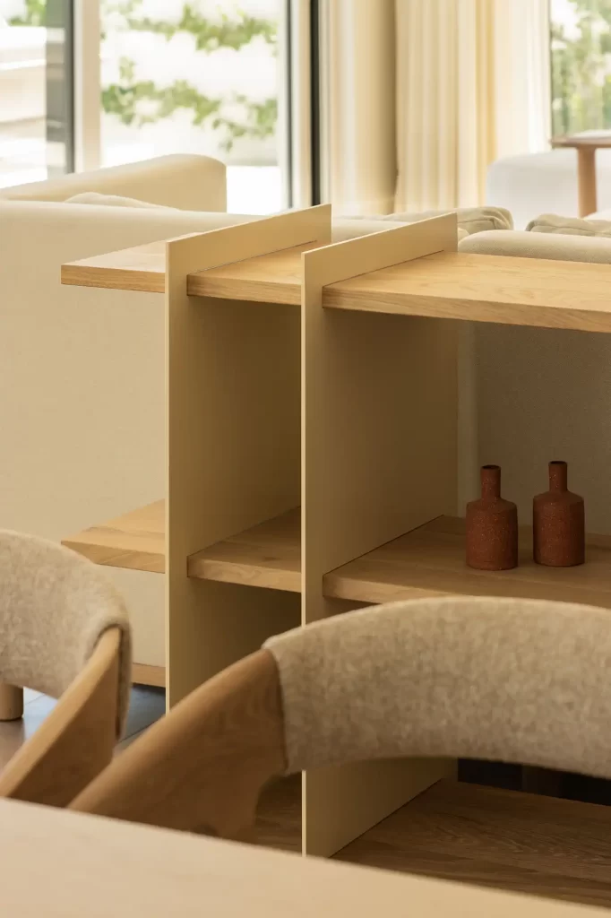 Layered textures and complimentary tones are carried seamlessly throughout the space – across finishes, joinery, furniture, and accessories – creating an atmosphere of understated elegance.